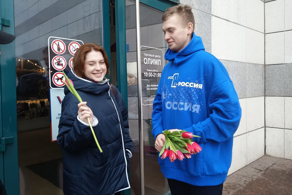 Активисты «Единой России» и «Молодой Гвардии» поздравили жительниц и гостей столицы Верхневолжья В Международный женский день, 8 марта,