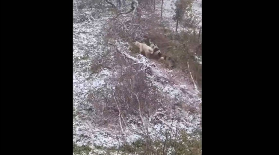 По этическим причинам мы не публикуем само видео. А вот что касается собак, то они, по словам жителей, домашние, но беспризорные - на самовыгуле.