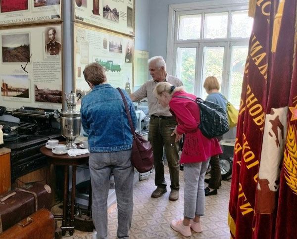 Библиотекарей было не оторвать от экспонатов: машинописные аппараты, старинный телефон, станционный колокол, ручной перевод стрелочного поста, ручная сирена-ревун… Поразили также оформленные каллиграфическим почерком «История развития турбазы «Озерная», рукописная книга «Почётные железнодорожники»