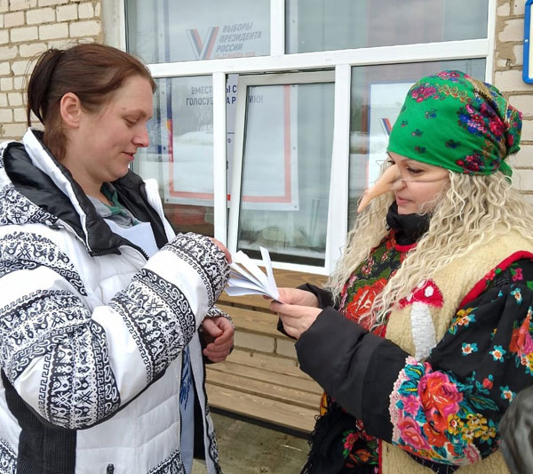 Заключительный день президентских выборов в России совпал с последним днем Масленицы! На избирательном участке с. Куженкино работник библиотеки творчески подошла к процессу голосования.