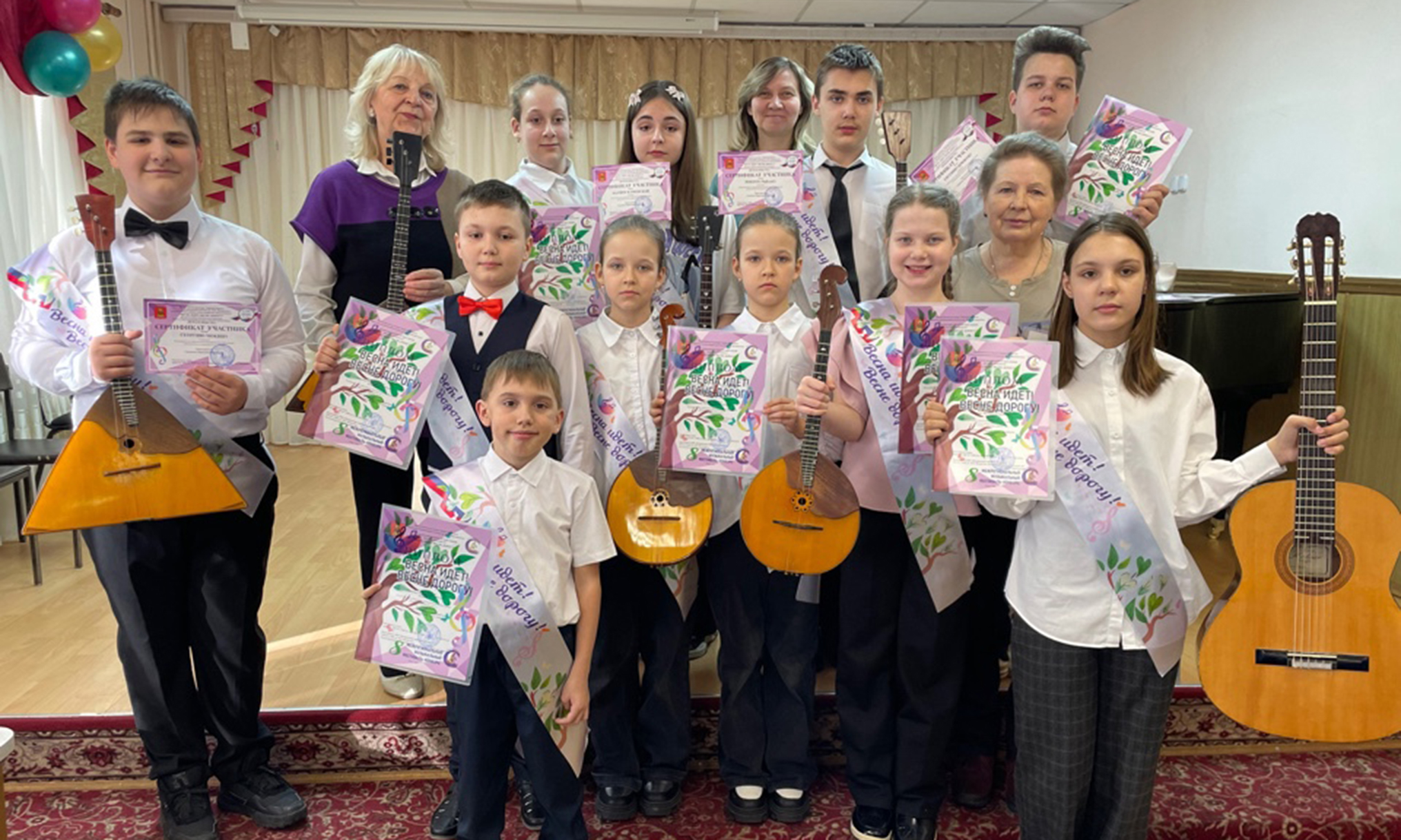 Поздравляем преподавателей ДШИ №1, учащихся с успешным выступлением и высокими результатами на празднике музыки! Особая благодарность Управлению культуры, молодежной политики, физической культуры и спорта администрации кимрского муниципального округа тверской области и лично Татьяне Анатольевне Фурман, также администрации школы и родителям, принявшим участие в организации поездки. Итоги конкурса: лауреаты I-й степени: Александра Афганлы, Северина Курникова, Аким Козин, дуэт: Александра Афганлы и Мария Спиридонова, ансамбль «Виолино» младший и старший состав, дуэт: София Маргарян и Таисия Багрова. Лауреатами II-й степени стали: Евгений Крюков, Владимир Молчанов, Арсений Горбунов, Олеся Тодоренко (аккордеон), Олеся Тодоренко (фортепиано), София Маргарян, Амина Костарева, ансамбль «Виолино» в составе Северина Курникова и Александра Афганлы, дуэт: Лилия Багрова (домра) и Таисия Багрова (фортепиано). Дипломы лауреата III-й степени получили: Елизавета Сазонова, Кристина Крюкова, Егор Романенко, Образцовый детский коллектив хор «Радуга».