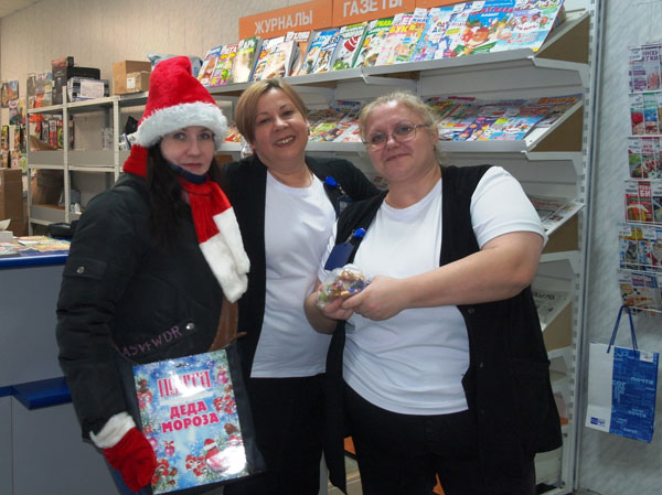Вручая открытки и конфеты, сотрудники библиотеки желали всем счастья, здоровья и всего самого наилучшего в новом году.