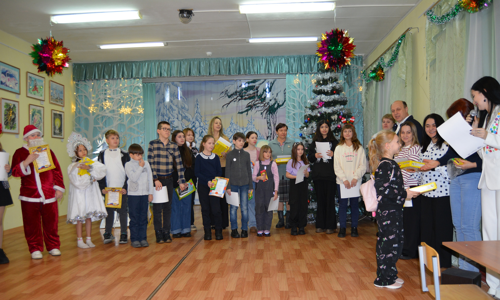 В атмосферу чудес, которые происходят в зимние праздники, всем присутствующим в зале помогли погрузиться воспитанники театральной студии «Орфей» под руководством С.В. Потапова. Они представили сказочную постановку «Самый главный Дед Мороз».
