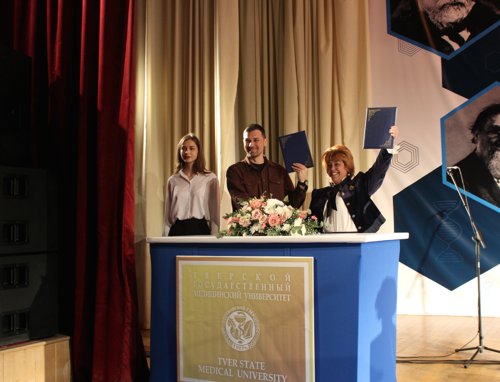 Благодарность Министерства здравоохранения Тверской области объявили старшему преподавателю кафедры анатомии, гистологии и эмбриологии Ирине Николаевне Шабановой, а Почетной грамотой регионального Минздрава наградили к.м.н., доцента, завкафедрой безопасности жизнедеятельности Игоря Алексеевича Жмакина и к.м.н., доцента, доцента кафедры педиатрии педиатрического факультета Ольгу Борисовну Федерякину;